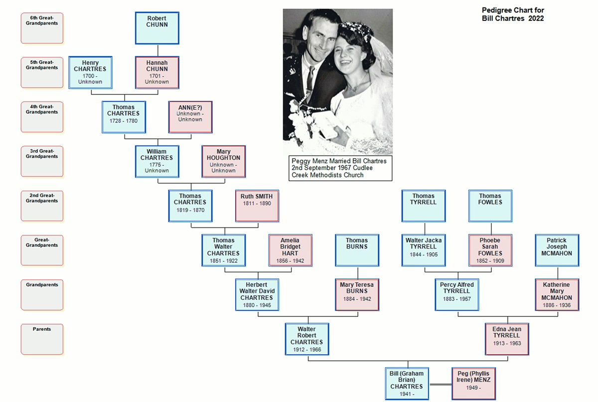 Unfortunately I know very little of my (Chartres) family history, and it was too late to find out when I decided to begin my research as my parents and most of their generation had passed away.